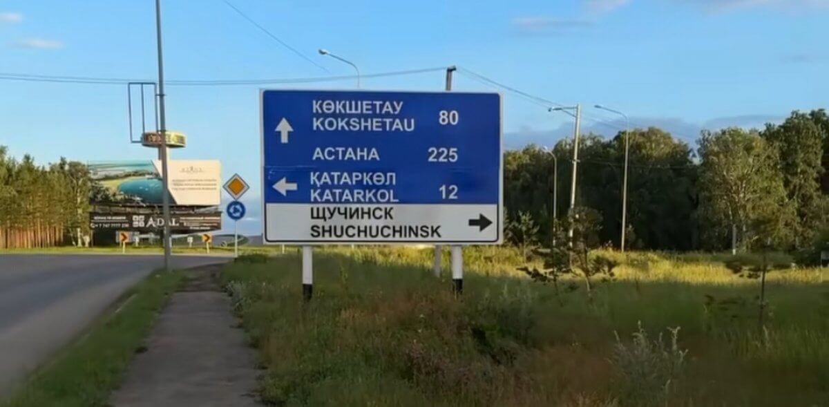 В социальных сетях распространилось видео дорожного указателя с ошибкой в названии города Щучинск, передает Liter.kz.