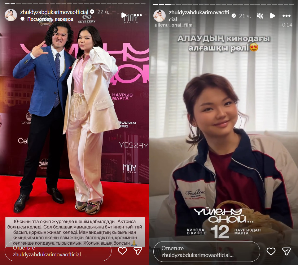 Казахстанская актриса Жулдыз Абдукаримова поделилась радостной новостью: ее дочь Алау начала свой путь в мире кино, передает Liter.kz.