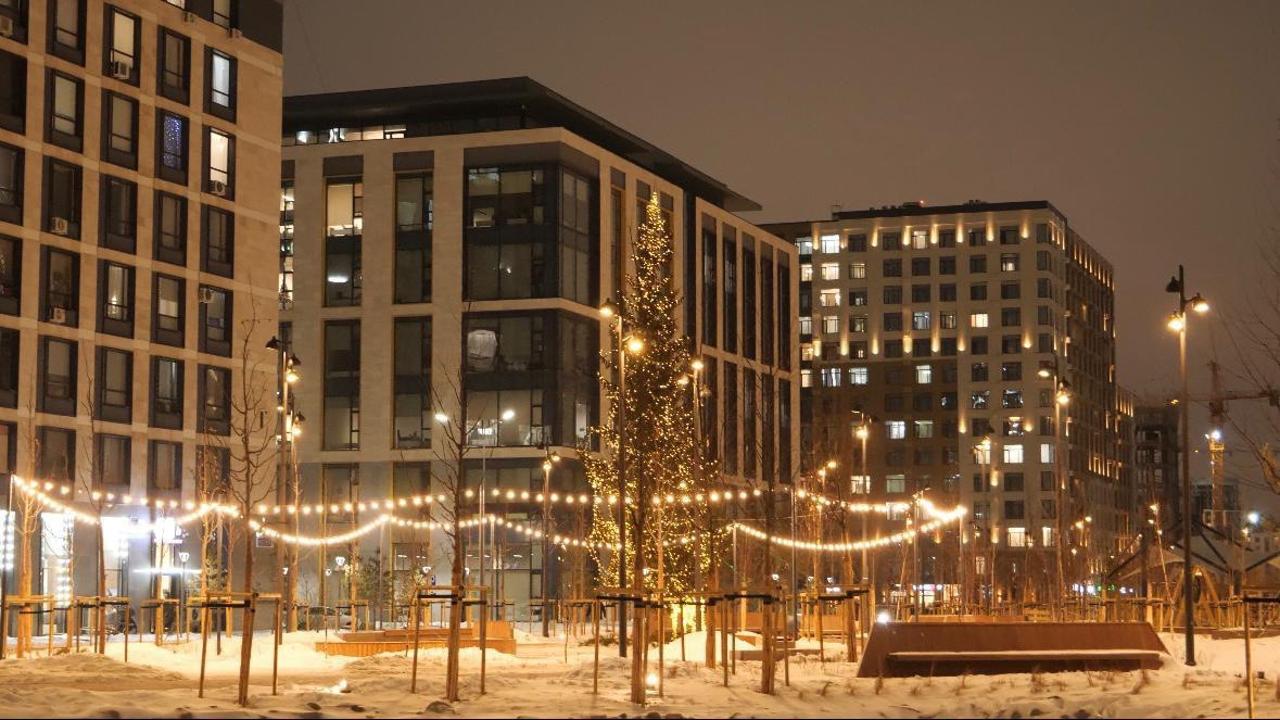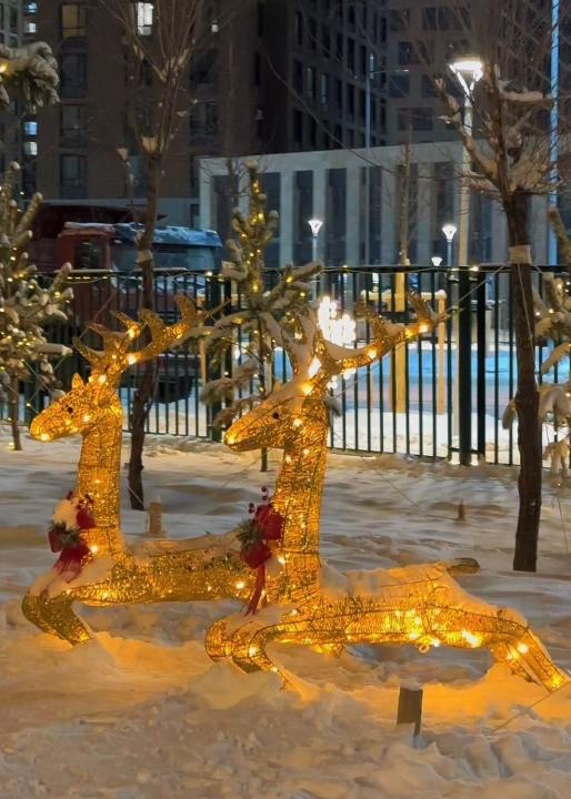 - На городской площади установлены большая горка и каток, а также тематические фотозоны и живая елка, идеально подходящая для праздничных фотографий.